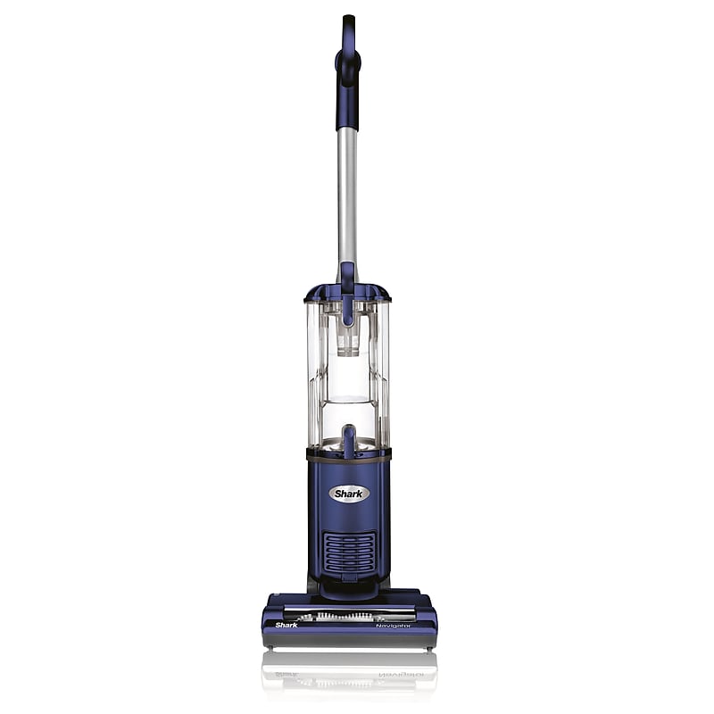 The Shark Navigator bagless upright vacuum cleaner never loses suction for long-lasting usage. The lightweight construction of the vacuum makes carrying easy. It comes with a large-capacity dust cup that saves time and energy. This vacuum cleaner has a motorized brush roll that is perfect for carpet and bare floor cleaning. The dust/crevice and pet upholstery attachment of the vacuum easily cleans hard-to-reach areas and stubborn pet hair. This vacuum comes with a 25' cord that allows you to clean a large area before changing outlets. Upright vacuum cleaner quickly removes pet hair, dust, dirt and other debris. Bagless design for easy transport. Two standard electrete filters helps you remove up to 99. 9% of dirt. Dimensions: 48"H x 12"W x 14"D. Motor provides ample cleaning power. A cord of length 25' to support long distance operation. Offers cleaning up to 9 1/4". Power: 700 W, Voltage: 120 V, Current: 5. 8 A. Provides full sized upright cleaning performance. Motorized brush roll allows you clean hard or carpeted floors. Dust/crevice and pet upholstery attachments to handle hard-to-reach areas and stubborn pet hair. Never lose suction technology assures long-lasting use. Offers large capacity and has bottom empty dust cup for easy cleaning. Brushroll shutoff offers superior carpet and bare floor cleaning. Offers flexible carpet height adjustments. Contains dust/crevice tool, pet upholstery brush and owner's manual. Meets ETL listings.