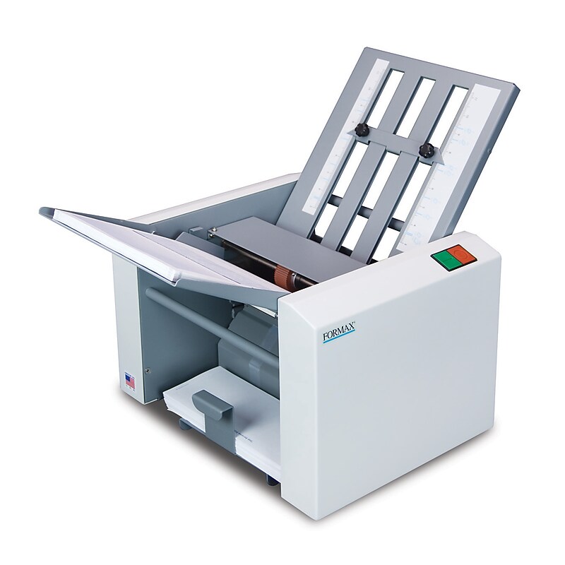 The FD1202 pressure sealer provides a user-friendly solution for processing one-piece pressure-sensitive mailers to eliminate the need for envelopes. Clearly marked fold plates, simple controls and a compact desktop design make this pressure sealer ideal for any small office environment. With a processing speed of up to 38 forms per minute and the ability to handle 14 forms, operators can efficiently process daily tasks. Proudly built in the USA with trusted Formax technology, the FD1202 assures reliability and performance. Made in the USA. Compact desktop design with user-friendly features provides easy installation and operation. Folds Z, C, Uneven Z, Uneven C, Half and custom folds. Adjustable catch tray provides neat, sequential stacking of processed forms. Hopper Capacity: Up to 160 forms 20#. Fixed Speed: Up to 38 forms per minute. Paper Size: Up to 8. 5 W x 14 L. Fold plates are pre-marked for popular folds to make changing fold types or form sizes easy. Weight: 55 lbs. , Dimensions: 11. 6 L x 14 W x 14. 5 H. 90 day manufacturer limited warranty. Securely Seal Single Page Documents, Checks, Invoices, School Reports and More No Envelopes Required!.