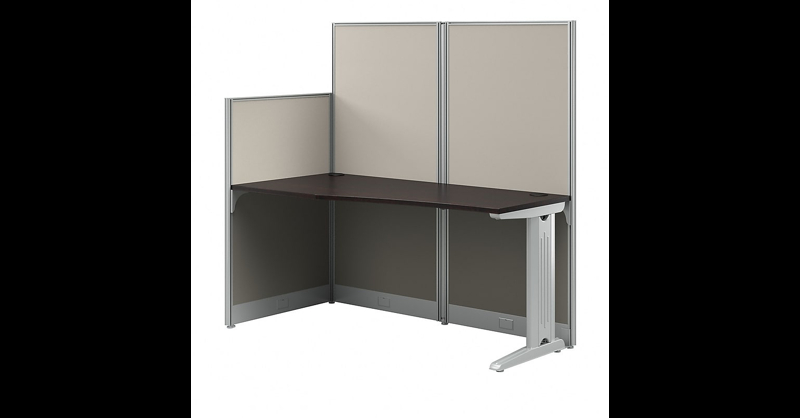 Bush Business Furniture's Office in an Hour Collection is an ideal solution for converting empty space into a practical and productive work environment. Designed with convenience in mind, this 65-inch Straight Cubicle Desk is simple to order and install so you can get your workplace up and running instantly. The commercial office desk supports up to 200 pounds while a thermally fused laminate finish protects it against scratches, stains, and other cosmetic damage to preserve its long-lasting appeal. Desktop grommets and removable leg panels keep cords and cables in order to maintain a neat workstation. Each computer desk has a 63H front-facing panel for privacy as well as a smaller 48H side panel for easy communication. This work desk has been meticulously tested to meet or exceed ANSI/BIFMA quality standards for safety and performance and is backed by a 10 Year Manufacturer's Warranty. 65W Cubicle Desk instantly turns any open space into a private and productive work environment. Thermally fused laminate surface resists scratches and stains to preserve the office desk's long-lasting appeal. Engineered Wood Assembled Dimensions: 65W x 33D x 63H. Each office cubicle includes one full-height 63H panel for privacy and a shorter 48H panel for communication. Built-in grommets and removable leg panels organize cords and cables to maintain a clutter-free workstation. Computer desk cubicles are designed for quick and easy installation with all materials and hardware included. Desk legs and privacy panels include adjustable levelers to compensate for uneven flooring. Each finish option is complemented by stylish fabric panels to give your workplace a professional appearance. Computer desk has been tested to meet or exceed ANSI/BIFMA quality standards for safety and performance. Commercial office desk is backed by the Bush Business Furniture 10 Year Manufacturer's Warranty. See the full Office in an Hour Collection to complete your workspace with coordinating storage solutions. Assembly Required.