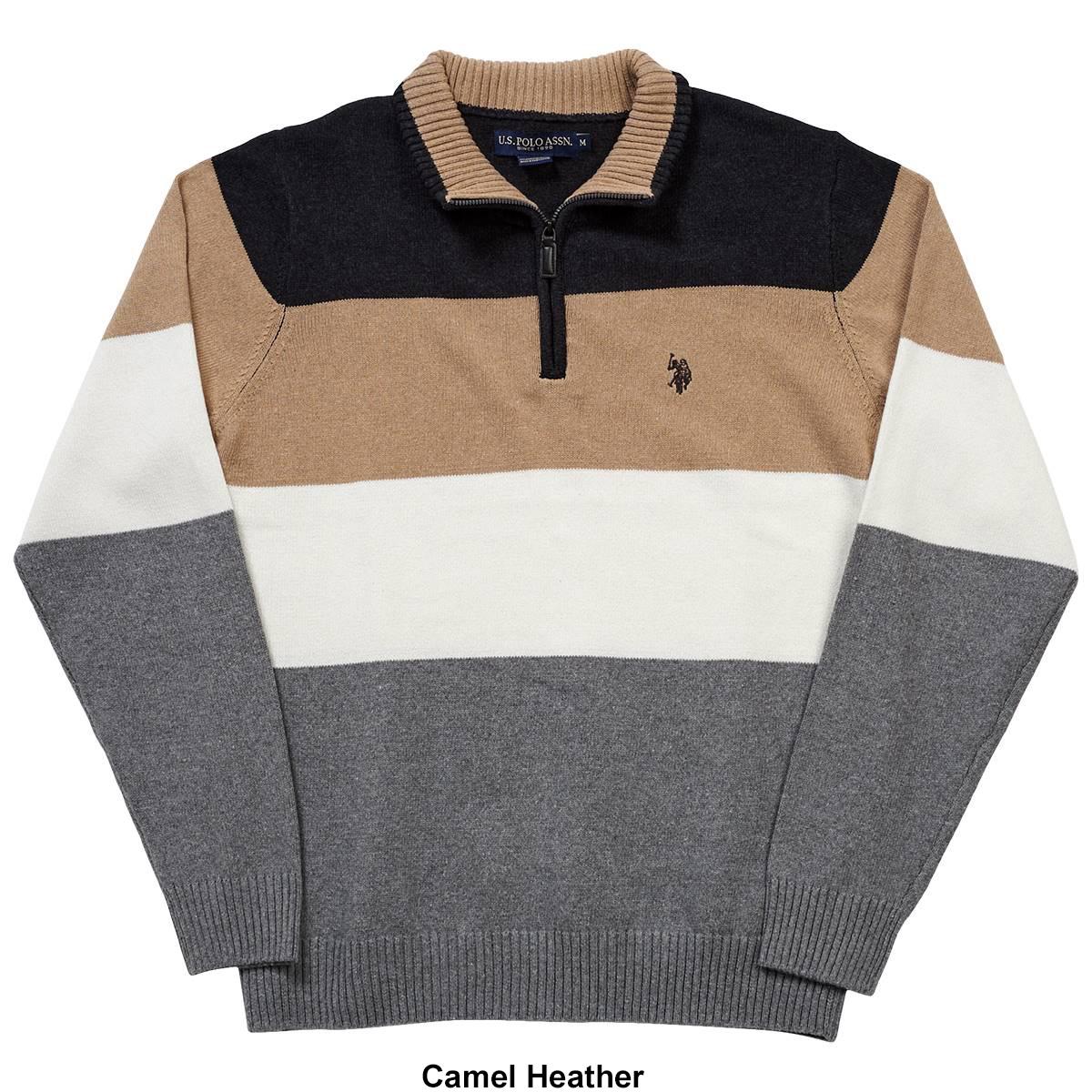 Mens U.S. Polo Assn.(R) Color Block 1/4 Zip Sweater
