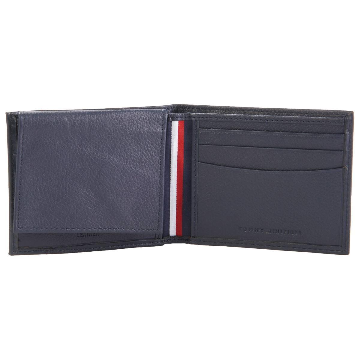 Pattern: Solid Tommy Hilfiger logo on the front Tommy Hilfiger 3 stripe accent on the inside of the wallet Thin technical lining helps shield your cards from data theft Clear ID window Multiple card slots Full bill compartment.
