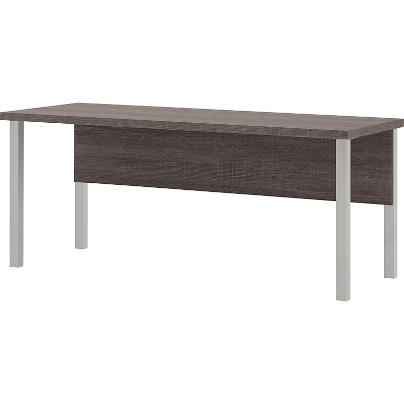 Pro-Linea has all the elements to create a modern and refined work environment. The clean lines of this collection bring a fresh look without compromising functionality and durability.Melamine. Durable 1. 5" commercial grade work surface with melamine finish that resists scratches, stains and wears. Overall dimensions: 71. 1" (L) 29. 5" (D) 29. 9" (H). The Legs feature levelers to adapt to any floor irregularities. Deluxe thick PVC edge. Square metal legs in matte silver finish. This unit meets or exceeds ANSI/BIFMA performance standards. Manufacturer's 10-Year Warranty. ⚠ WARNING: This product can expose you to chemicals including formaldehyde, which is known to the State of California to cause cancer or birth defects or other reproductive harm. For more information, go to www. p65warnings. ca. gov/furniture.