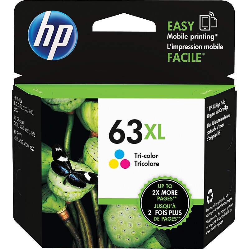 Original HP Cartridges are easy to install for printing vibrant color, crisp text, and rich blacks. Use HP 63 ink cartridges for legendary HP print quality. HP cartridge yield (approx. ): 300 pages. 1 New Original Tri-Color HP ink cartridge (F6U63AN). Buy Original HP Ink Cartridges or save up to 50% and never run out with HP Instant Ink, the Smart Ink Subscription. Get up to 2x the pages with Original HP XL ink cartridges compared to standard cartridges. HP 63 ink cartridges work with: HP Deskjet 1112, 2130, 2132, 3630, 3631, 3632, 3633, 3634, 3636, 3637 HP ENVY 4511, 4512, 4513, 4520, 4522, 4523, 4524 HP Officejet 3830, 3831, 3833, 4650, 4652, 4654, 4655, 5220, 5255, 5258, 5260. Rely on Original HP ink cartridges for crisp, fade-resistant documents that keep for years with smear-resistant, laser-quality text and nuanced images. Safety Data Sheet . Original HP provides high-yield printing for great value.