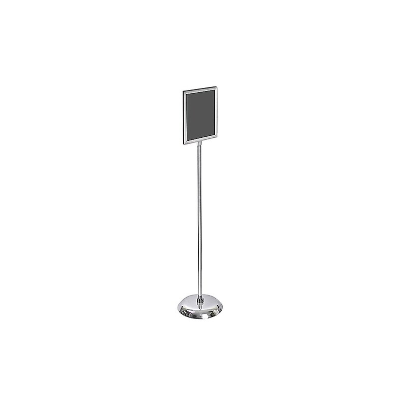 Present discounts and notices with this Azar Displays double-sided frame floor display. Standing 49. 6 inches tall, this floor display offers great visibility in schools, stores, trade-shows and conferences. This Azar Displays double-sided frame floor display stands upright on its own with a weight base and high-quality metal frame. Sign floor holder lets you conveniently display signage to ensure maximum visibility. Graymetal construction for strength and durability. Holds pages with portrait orientation; top loading. Designed to hold display literature that measures 8. 5"W 11"H. Can be placed on floors for easy viewing. Showcase offers and graphics with this Azar Displays 8. 5 11-inch double-sided frame floor display.