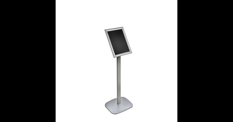 Azar Displays 11 x 8. 5 -inch inch Angled Snap Frame Floor Display is made of metal for strength that includes a clear protective plastic cover for protection. It features a straight pole base to stand and can be used horizontally or vertically. Quantity: Each. Type: Snap Frame. Size:11H x 8. 5W -inch. Features: Stands on a Straight Metal Pole Base & Frame Can be Used Vertically or Horizontally. Azar Displays 11 x 8. 5 -inch inch Angled Snap Frame Floor Display - Made of metal for durability and includes a straight pole base to stand.