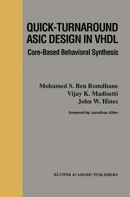 From the Foreword..... Modern digital signal processing applications provide a large challenge to the system designer. Algorithms are becoming increasingly complex, and yet they must be realized with tight performance constraints. Nevertheless, these DSP algorithms are often built from many constituent canonical subtasks (e.g., IIR and FIR filters, FFTs) that can be reused in other subtasks. Design is then a problem of composing these core entities into a cohesive whole to provide both the intended functionality and the required performance. In order to organize the design process, there have been two major approaches. The top-down approach starts with an abstract, concise, functional description which can be quickly generated. On the other hand, the bottom-up approach starts from a detailed low-level design where performance can be directly assessed, but where the requisite design and interface detail take a long time to generate. In this book, the authors show a way to effectively resolve this tension by retaining the high-level conciseness of VHDL while parameterizing it to get good fit to specific applications through reuse of core library components. Since they build on a pre-designed set of core elements, accurate area, speed and power estimates can be percolated to high- level design routines which explore the design space. Results are impressive, and the cost model provided will prove to be very useful. Overall, the authors have provided an up-to-date approach, doing a good job at getting performance out of high-level design. The methodology provided makes good use of extant design tools, and is realistic in terms of the industrial design process. The approach is interesting in its own right, but is also of direct utility, and it will give the existing DSP CAD tools a highly competitive alternative. The techniques described have been developed within ARPAs RASSP (Rapid Prototyping of Application Specific SignalProcessors) project, and should be of great interest there, as well as to many industrial designers. Professor Jonathan Allen, Massachusetts Institute of Technology.