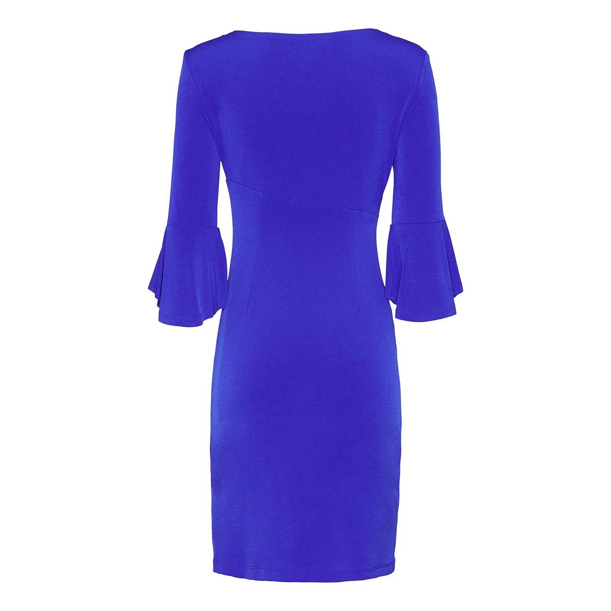 Sleeve Length: 3/4 Sleeve Neck: Round Neck Length: 42" Ruffle sleeve Side ruched wrap.