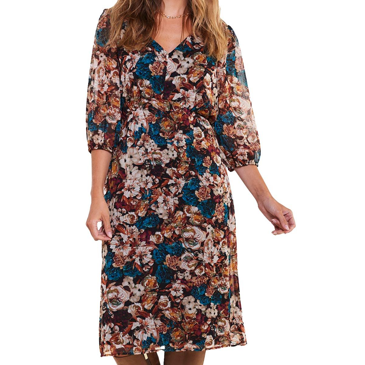 Plus Size Connected Apparel 3/4 Sleeve Floral Empire Waist Dress