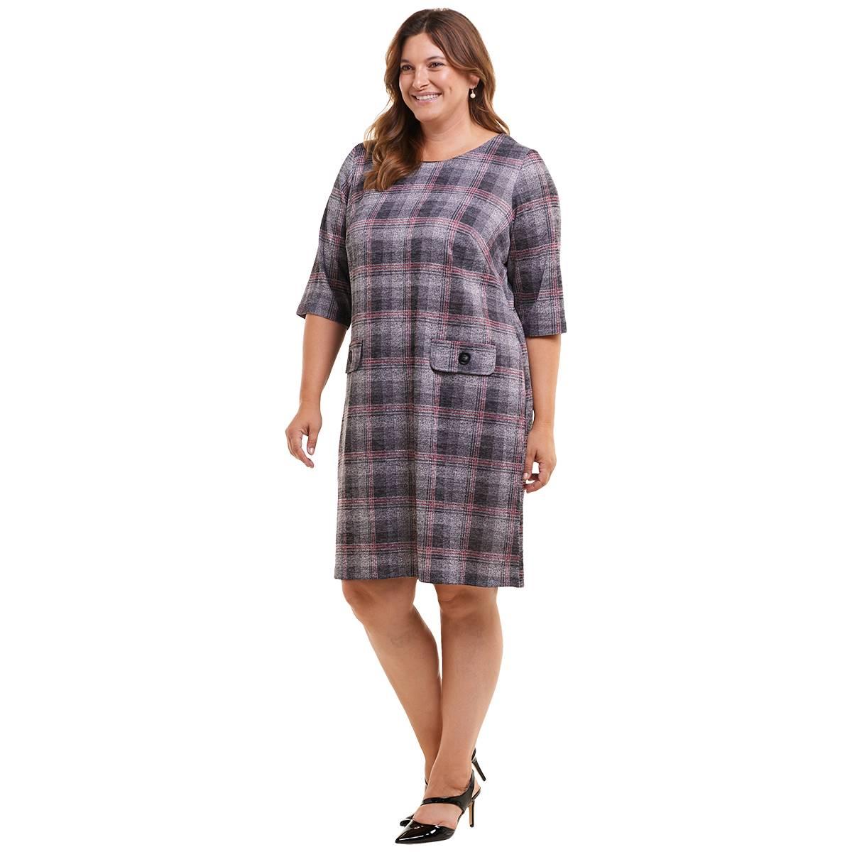 Buy Plus Size Connected Apparel Long Sleeve Plaid Pocket A-Line Dress for $39.99 at @ Boscovs.com