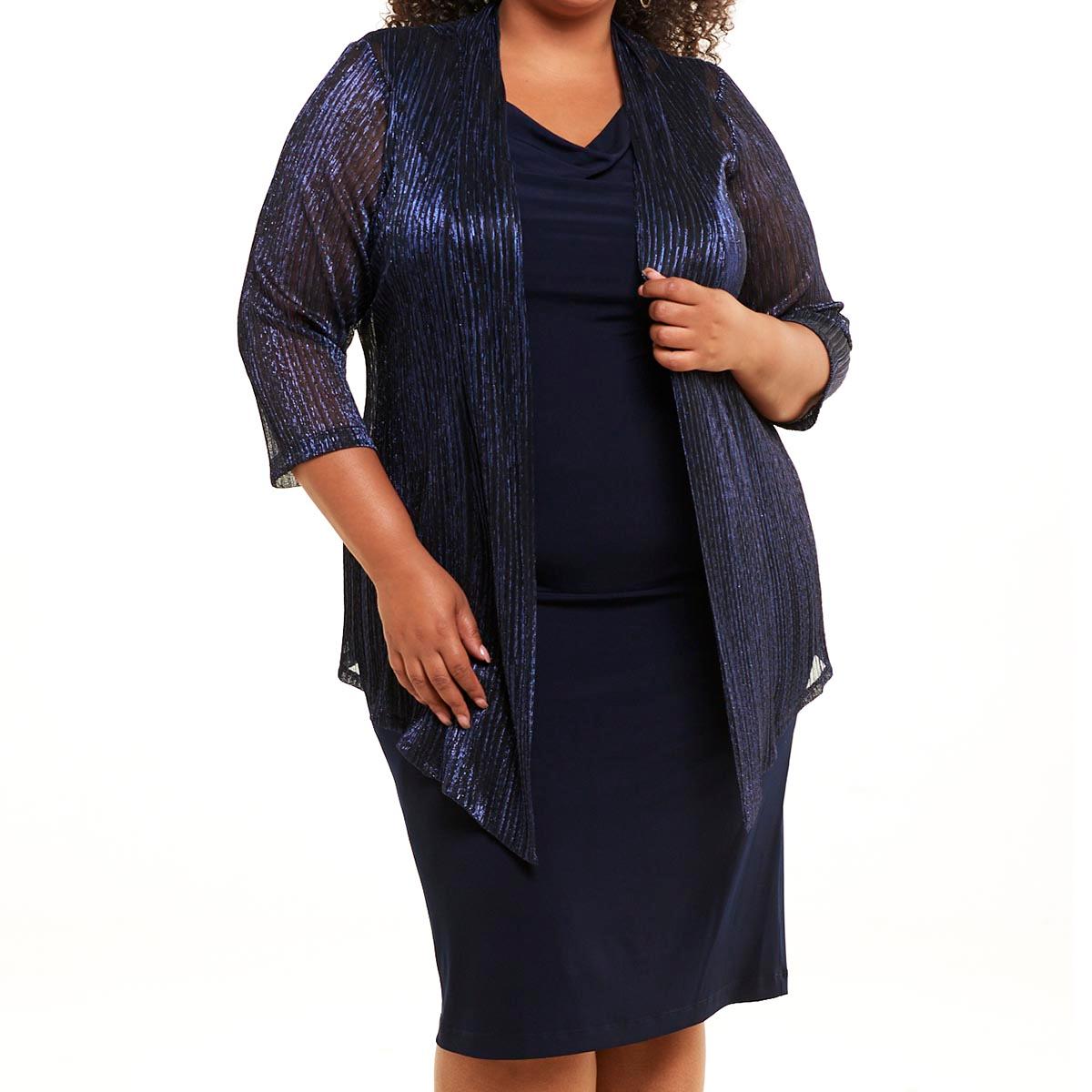 Plus Size Connected Apparel 2pc. Drape Neck Metallic Jacket Dress