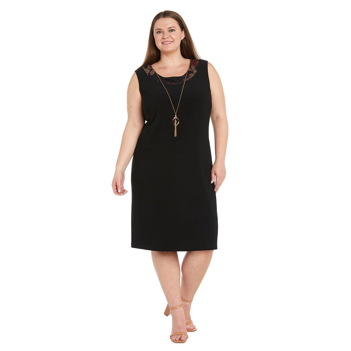 Dress: Patterns: Solid Sleeve Length: Sleeveless Neck: Scoop Neck Contrasting neckline Detachable Accessory Included (Remove Before Washing) Pull-on styling Unlined Jacket: Patterns: Abstract Floral Sleeve Length: 3/4 Sleeve Contrasting banded cuffs & lapel Embellished pattern High-low hemline Mesh fabric Unlined.