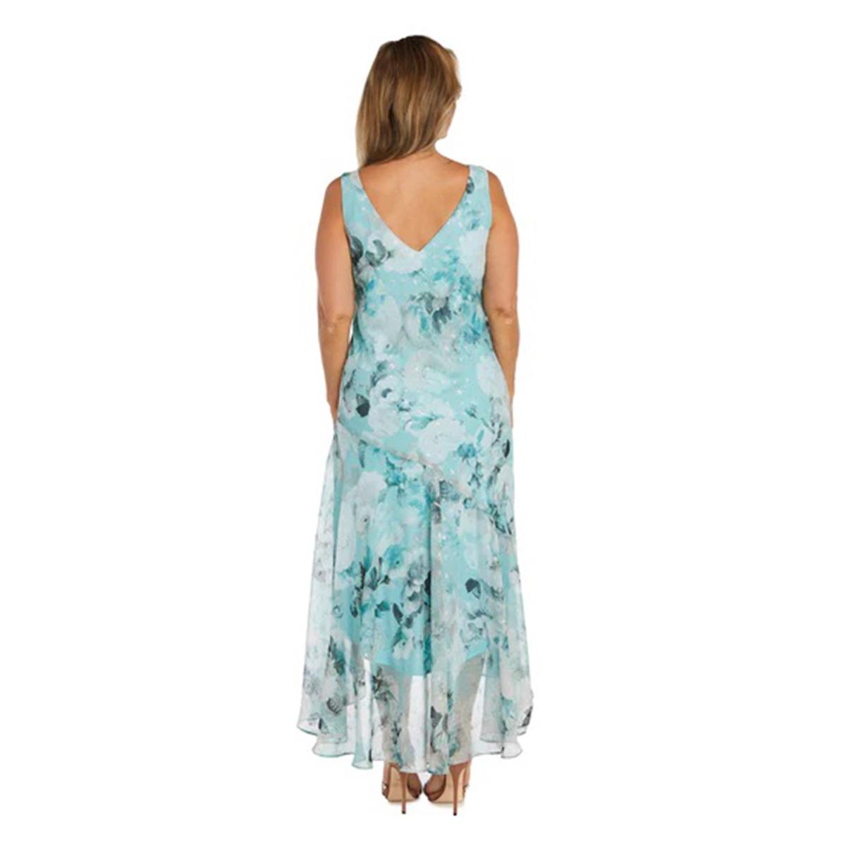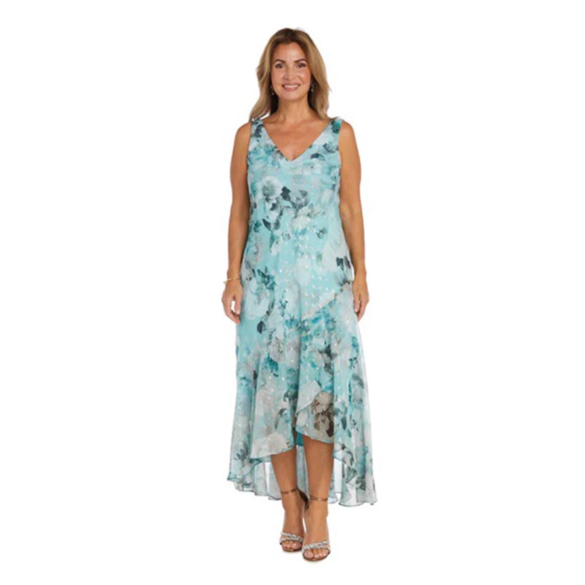 Wear this Plus Size R&M Richards metallic clip dot chiffon jacket dress to brunch with the girls or hit up your next formal event in this stunning look. Sleeve Length: 3/4 Sleeve Neck: V-Neck Length: 55" Ruffle hem.