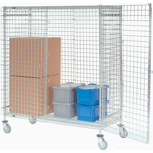 These Security Trucks feature the same quality construction as the stationary security units. Keep valuable items such as meats, liquor, silver, pharmaceuticals, syringes and expensive tools secure and at the same time be able to transport them throughout your facility. Lockable doors (opens a full 270°) prevent items from falling out of truck while in transit. Includes 2 fixed Wire Shelves for top and base, 4 63" Posts, 1 Door Set, 1 Back and Side Set, Shelf Clips, and 4 5" Polyurethane Swivel Casters. Compact size makes it ideal for permanent inventory storage. Overall Height. Poly-Z-Brite features a true powder-epoxy over zinc-chromate electro-plating that ensures a strong durable finish and handles temperature and moisture extremes well. NEXGard , an anti-microbial agent protects the epoxy coating from bacteria, mold, and mildew that causes odors and product degradation. Handles all environmental conditions. Limited fifteen-year warranty against rust and corrosion.
