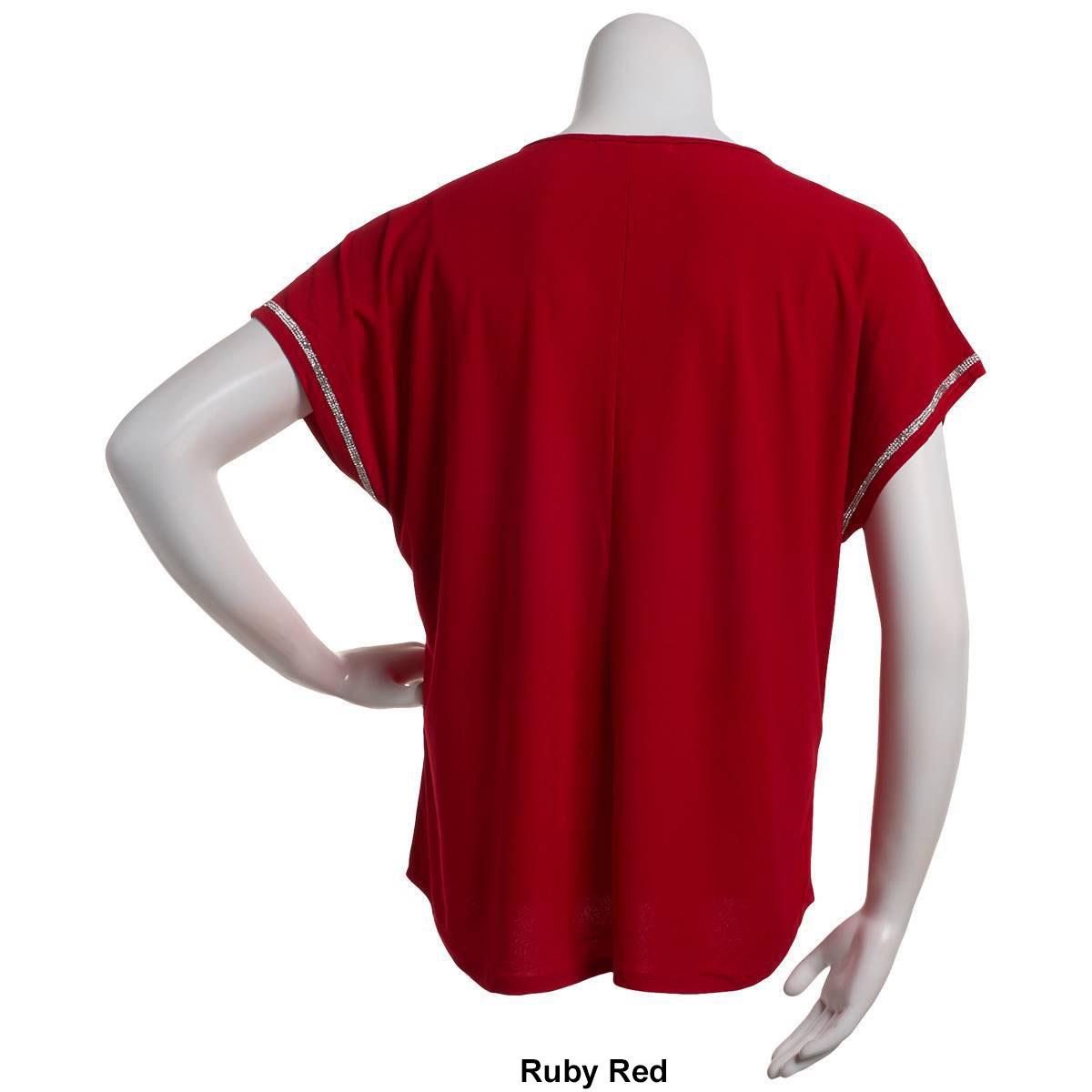 Plus Size 89th & Madison Dolman Sleeve Rhinestone Trim Blouse