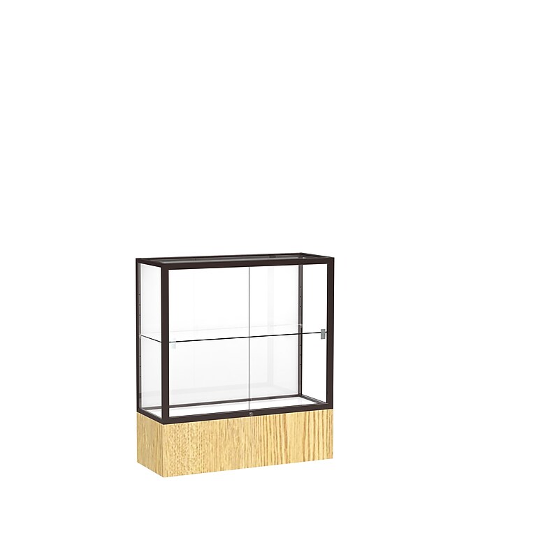 Ghent Light Oak Metal & Glass Counter Case features anodized aluminum framing that secures the sliding tempered glass doors. It is ideal for traditional and contemporary settings. Color & Material: Light Oak Metal & Glass. Dimension: 40"H 36"W 14"D. Type: Counter Case. Built-in Lock: Yes. Features: Reliant Series Combines the Strength and Durability of Aluminum with the Engaging Look of Wood. ⚠ WARNING: This product can expose you to chemicals including Wood Dust, which are known to the State of California to cause cancer. For more information, visit www. P65Warnings. ca. gov. Ghent Light Oak Metal & Glass Counter Case - Includes an optional cornice light fixture for floor cases to enhance your presentation.