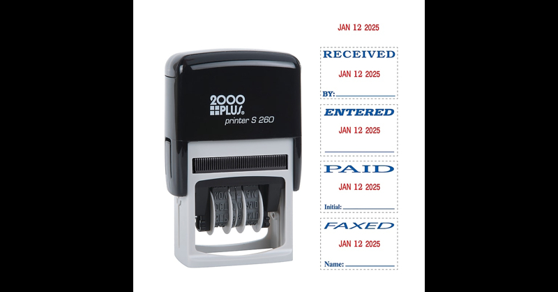 2000 Plus Printer 260 Faxed, Paid, Received, Entered Rectangle Date Stamps,and Red Ink ()