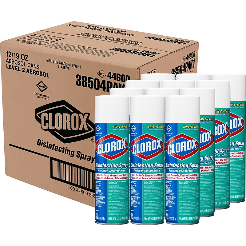 Clorox Disinfecting Spray kills relevant bacteria, viruses and fungi that can cause serious illness and infection. It is EPA-registered to kill as many as 64 microorganisms and it kills the majority of bacteria on its EPA Master Label in 3 minutes. This disinfecting spray meets EPA criteria for use against SARS-CoV-2, the virus that causes COVID-19. With incredible versatility, Clorox Disinfecting Spray can be used on a wide variety of hard surfaces while deodorizing and actually eliminating the bacteria that cause bad odors. From Clorox Commercial Solutions, this disinfecting spray is ideal for use in offices, day care centers, schools, busy healthcare environments and other commercial facilities. DISINFECTING SPRAY: Clean and deodorize high-traffic areas with Clorox Disinfecting Spray that kills more than 50 bacteria, viruses and fungi in 3 minutes or less; Packaging may vary. MULTI-SURFACE CLEANER: This Clorox spray penetrates and disinfects hard surfaces such as doorknobs and phones plus prevents the growth of mold. BLEACH FREE CLEANER: Eliminate odor causing bacteria with a fresh clean scent and bleach free Clorox cleaning power. KILL VIRUSES: This spray cleaner eliminates messes and germs; meets EPA criteria for use against SARS-CoV-2, the virus that causes COVID-19. GREAT FOR COMMERCIAL USE: Ideal for use in offices, day care centers, schools, hotels, restaurants and other commercial facilities. Disinfecting Spray that kills more than 50 bacteria, viruses and fungi in 3 minutes or less.