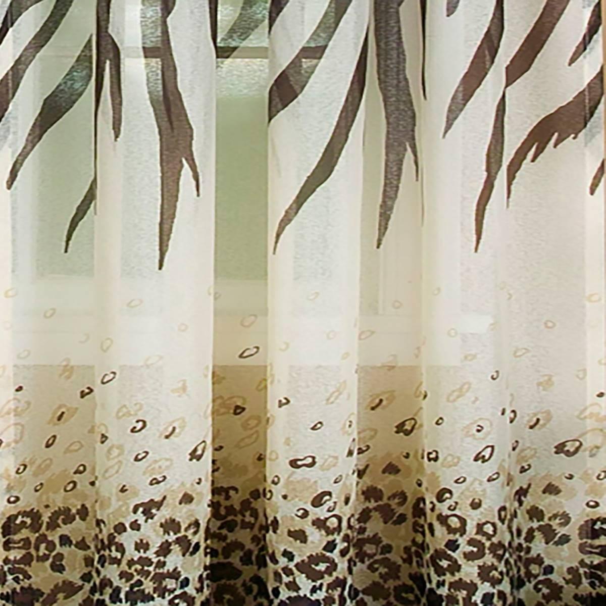 The Achim Kenya curtain panel with a linen like textured cloth material featuring engineered animal prints, combining leopard graduating into a zebra pattern.