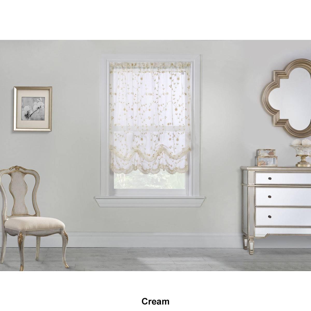 This Habitat Grandeur pole top balloon curtain will add a touch of elegance to your decor by beautifully accentuating your windows with our adjustable balloon curtain. The curtain is designed in an exquisite faux linen fabric with an embroidered floral motif fashioned with a lovely scalloped bottom hem also delicately embroidered. Its light filtering style allows natural light to flow through toning down the glare of direct sunlight. This panel's length is best suited for rooms where you prefer not to hang long curtains or where you just need to cover a small window. Sold as a single panel.