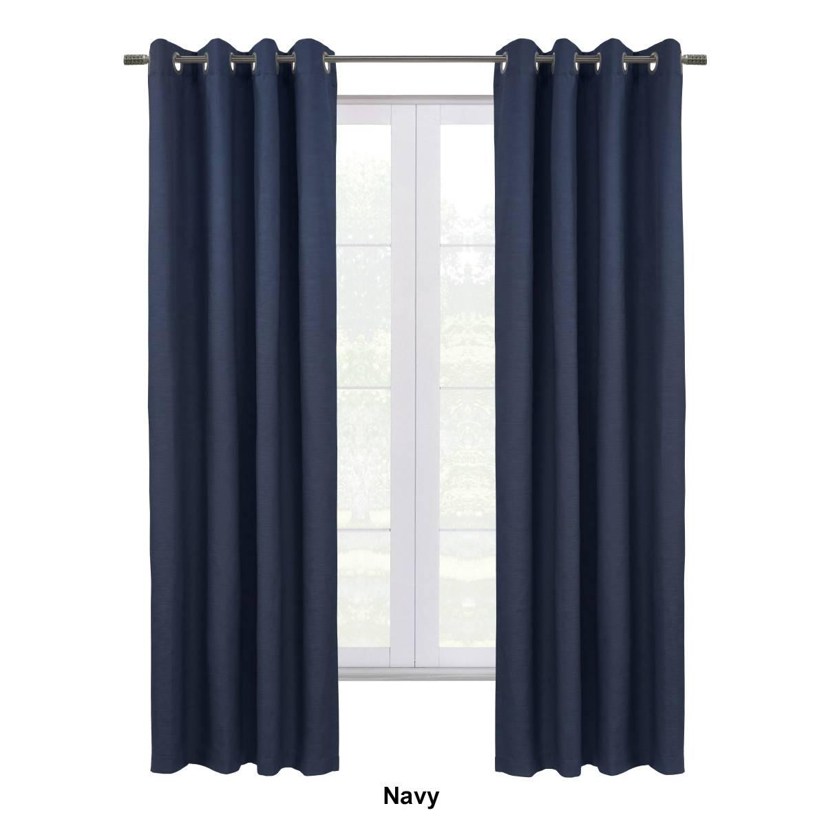 This Thermaplus(tm) Shadow grommet curtain panel will frame your windows with a polyester-cotton blend with a unique slub texture designed to provide a relaxed feel to any room in your home. The backing is constructed with multiple bonded layers of foam that create a hotel quality 100% true, total blackout environment. Providing absolute privacy, heating, and cooling cost-cutting benefits, as well as sound dampening. Sold as a single panel.