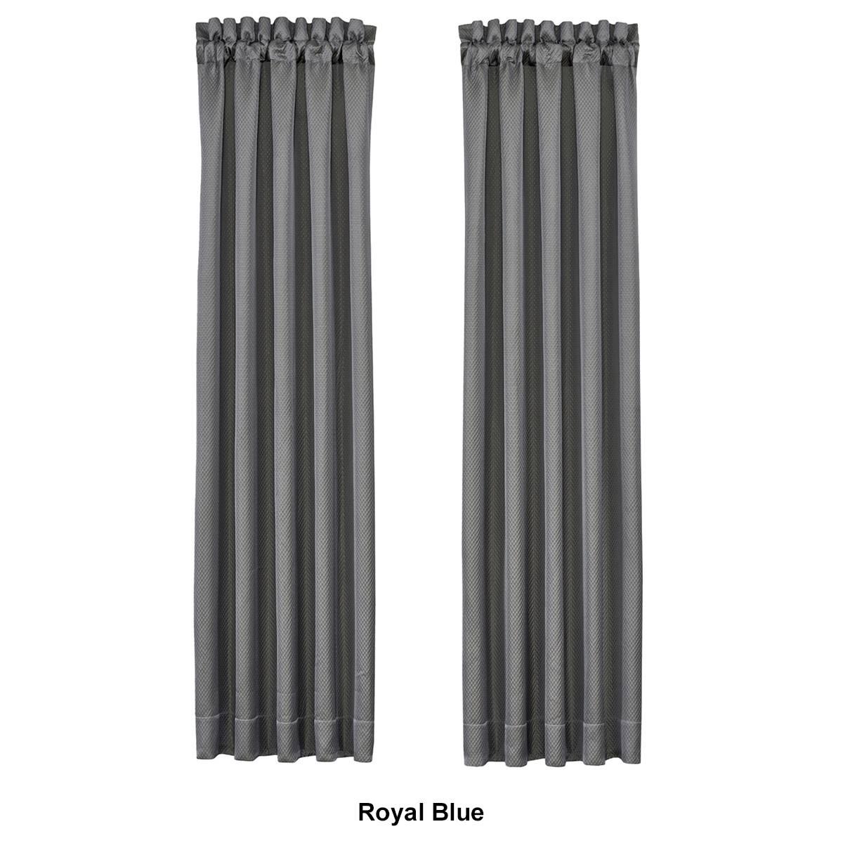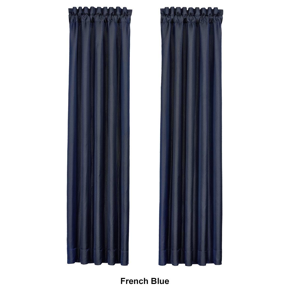 The J. Queen New York Excelsior window panel pair features a plush diamond embossed satin fabric. Each panel is lined to keep your room shaded and comfortable and the weighted hems allow the panels to drape beautifully. The luxurious panels include matching tiebacks to complete the fresh airy look. Pair these panels with the Excelsior window valance and bedding collection to complete your bedroom decor. Complete this look with #850518 Size: 50x84 and 50x95 Shown: Two 84" panels Two panel pairs and 2 tiebacks.