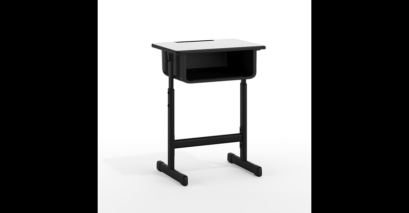 This highly durable and strong student desk is perfect for any classroom. It has an adjustable height which ensures that it can fit students of all sizes as well as a hardy pedestal frame and anti-slip floor caps that provides additional stability and reduces noise. The desktop gives the students plenty of space to store books and other items and is made out of . 75'' thick high pressure laminate top to sustain everyday wear. The numerous features ensure that this student desk is a must have for your classroom. White and Gray plastic table. Dimensions: 28. 25" - 31. 5"H x 23. 62"W x 71. 75"D. Popular Student Desk with Open Book Box. Designed for plenty of leg room. Book bag hooks on both sides of desk. Spacious 23. 5''W x 17. 75''D work surface with pencil groove. 0. 75'' Thick high pressure laminate top. Black heavy duty plastic book box with pencil groove. Black pedestal frame. Adjustable height legs. Anti-Slip floor caps prevent desk from slipping and reduces any noise. Recommended for elementary - high school grade students. Spacious 23. 5"W x 17. 75"D work surface with pencil groove. 0. 75" Thick high pressure laminate top. Get a solid and durable desk for your classroom with the Student Desk withTop and Adjustable Height Black Pedestal Frame.