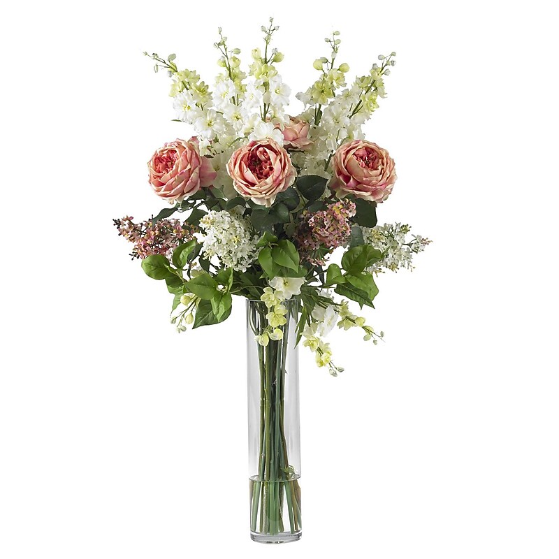 Nearly Natural Rose Delphinium and Lilac Floral Arrangements, Pink
