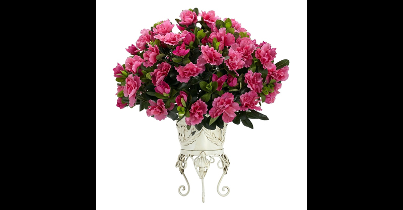 Create beautiful nature displays with the "Nearly Natural Azalea Desk Top Plant in Decorative Vase". Featuring authentic-looking foliage and branches, this desk top accessory is perfect for your home or office. The multi-colored hue and overall construction come together to make this flowering plant a stylish addition to your space. This decorative vase paired with the plant make a wonderful accessory for your home. Perfect for indoor use, this plant is a great choice for adding lush greenery any residential or commercial space. Available with vase, it can be easily used in any space. Color: Pink. Overall Dimensions: 19"H x 20"W x 18"D. Vase: 9. 5"H x 6"W. Perfectly rounded full blooms. Supported by a timeless metal vase. The 'Nearly Natural Azalea Desk Top Plant in Decorative Vase' lets you add natures magical feel to your home.