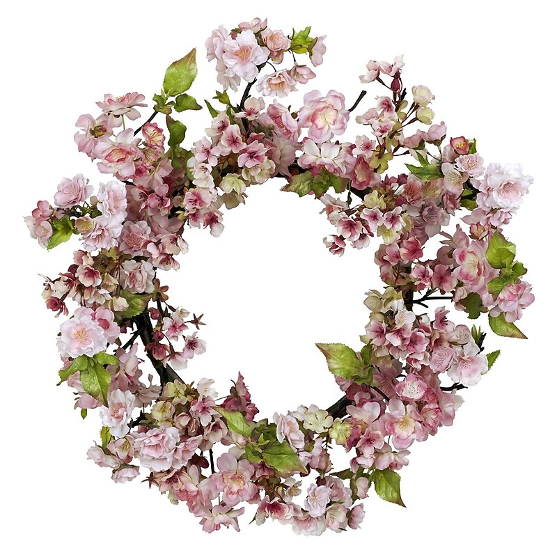 Decorating your home with floral accessories is easy with our "Nearly Natural Cherry Blossom Wreath". This wreaths can be used to add interesting pops of color and texture in your home or office decor. Ideal for everyday use, these roses can enhance your home or office decor by introducing color and texture in a room. The florals have a pink hue and are medium-sized. Add a bit of nature to your space with these spring accessories. Color: Pink. Overall Dimensions: 24"H x 24"W x 3"D. A truly beautiful symbol of Japan. You will feel tranquil when you look upon it. The pastel colors bring a sense of piece. Creates a calming, soothing mood. Add a green touch to your space with the 'Nearly Natural Cherry Blossom Wreath'.
