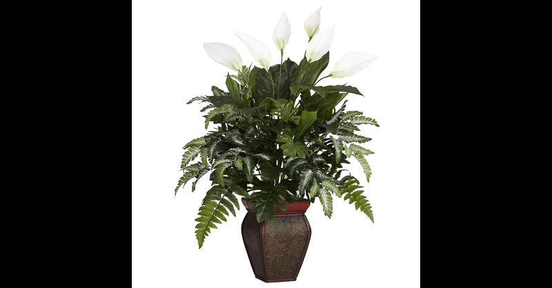 Create beautiful nature displays with the "Nearly Natural Mixed Greens Desk Top Plant in Decorative Vase". Featuring authentic-looking foliage and branches, this desk top accessory is perfect for your home or office. With a natural-looking green hue, the spathyfillum plant has a beautiful authentic look and feel. Accompanied with this decorative vase, the plant is a gorgeous decorative accent for any space. Ideal for indoor use, this plant adds greenery to your space without any need of watering or trimming. Available with vase, it is a great choice for beautifying your decor. Color: Green. Overall Dimensions: 29"H x 25"W x 22"D. Vase: 9. 25"H x 6"W. Generate feelings of beauty and elegance. Enduring beauty that will last for years to come. Refresh your space with the perfectly crafted 'Nearly Natural Mixed Greens Desk Top Plant in Decorative Vase'.