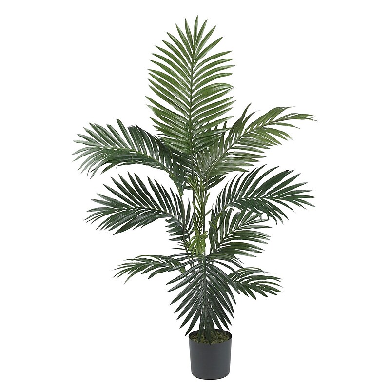 Add a bit of green to your home or office with the "Nearly Natural Kentia Palm Silk Tree in Pot". This floor plant accessory helps to infuse natural freshness into any space. The palm plant has a natural-looking green hue for a realistic touch to your decor. Adding a decorative touch to the plant, the pot helps to enhance your overall decor. Perfect for indoor use, this plant is a great choice for adding lush greenery any residential or commercial space. For completing your decor, it comes with pot. Color: Green. Overall Dimensions: 48"H x 40"W x 40"D. Vase: 5"H x 6"W. 9 full fronds of breezy palm leaves. Captures the essence of the real tree. Bring natures touch to your home with the realistic 'Nearly Natural Kentia Palm Silk Tree in Pot'.