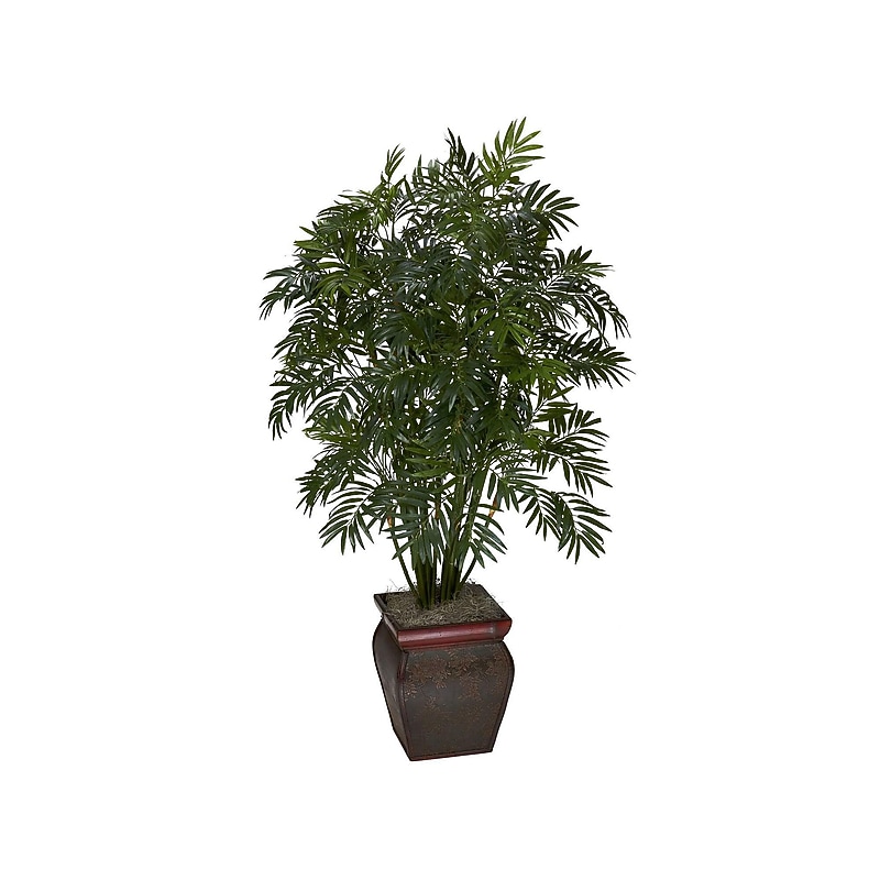 Create your own tropical paradise with this Nearly Natural mini bamboo palm. This artificial plant has a realistic, intricate leaf formation and is made with high-quality silk, and its natural shine is ideal for brightening up low-light areas. Already potted in a decorative container, this Nearly Natural mini bamboo palm stands at 45 inches high, so it looks just as if you've brought it in from the garden. Bamboo palm for any home or office that needs some sunshine and summer fun. Color: Tree size: 45"H x 26"W x 22"D. For indoor use only. Decorative vase measurements: 11"H x 9"W. Bring a low-maintenance slice of the landscape indoors with this Nearly Natural mini bamboo palm.