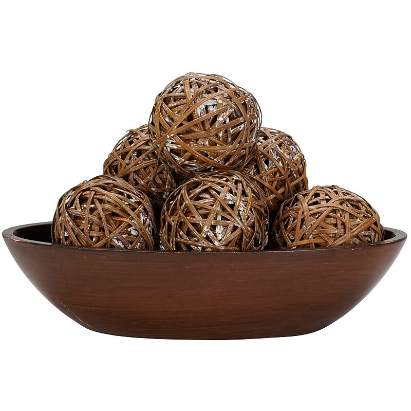 You can accentuate the appearance of your living room or office space by placing the Nearly Natural 3023 Decorative Balls Set of 6 on the centre table. These balls are made of cane and come in a neutral finish. You can have some fun while choosing the perfect spot to place them. This set of six adds more appeal and spirit to your decor. Color: Brown. Material: Wood. Dimensions: 3. 75"H x 3. 75"W x 3. 75"D. A sure favorite for years to come. Liven up any room with these decorative wicker balls. Cheerful spheres that can fit any dcor. Bowl not included. Bring a natural feeling in to your home with the 'Nearly Natural Decorative Balls'.