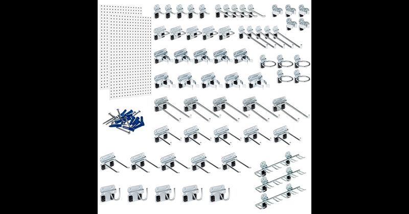 Triton Products LocBoard Kit, (2) x 42-1/2" x 9/16" Steel Square Hole Pegboards, 63 Assorted Hooks ()