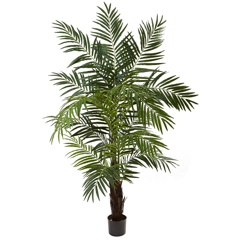 Create beautiful nature displays with the "Nearly Natural Areca Palm Tree in Pot". Featuring authentic-looking foliage and branches, this floor plant accessory is perfect for your home or office. The green hue and overall construction come together to make this palm plant a stylish addition to your space. Accompanied with this pot, the plant is a gorgeous decorative accent for any space. Ideal for indoor use, this plant adds greenery to your space without any need of watering or trimming. For ease in use, it comes with pot. Color: Green. Overall Dimensions: 72"H x 58"W x 58"D. Vase: 6"H x 6. 75"W. Great for your home or office. Makes a perfect gift. 13 Trunks give a realistic look. Enjoy a realistic feel of nature with the 'Nearly Natural Areca Palm Tree in Pot'.