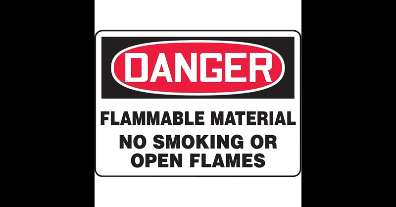 Safety sign made of adhesive vinyl. Measures x 10". DANGER FLAMMABLE MATERIAL NO SMOKING OR OPEN FLAMES. 004" thick Adhesive Vinyl. x 10". Square corners and scored backing for quick peel-off and application. Printed matte surface with permanent acrylic adhesive. Moisture-resistant. Indoor or sheltered environments. Complies with OSHA 29 CFR 1910. 145 and ANSI Z535 requirements.