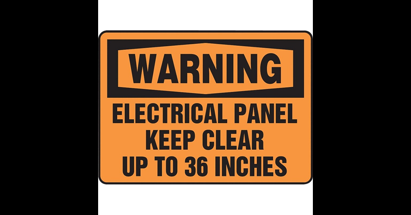 Safety sign made of adhesive vinyl. Measures x 14". WARNING ELECTRICAL PANEL KEEP CLEAR UP TO 36 INCHES. 004" thick Adhesive Vinyl. x 14". Square corners and scored backing for quick peel-off and application. Printed matte surface with permanent acrylic adhesive. Moisture-resistant. Indoor or sheltered environments. Complies with OSHA 29 CFR 1910. 145 and ANSI Z535 requirements.