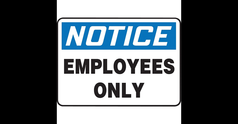 Safety sign made of adhesive vinyl. Measures x 10". NOTICE EMPLOYEES ONLY. 004" thick Adhesive Vinyl. x 10". Square corners and scored backing for quick peel-off and application. Printed matte surface with permanent acrylic adhesive. Moisture-resistant. Indoor or sheltered environments. Complies with OSHA 29 CFR 1910. 145 and ANSI Z535 requirements.
