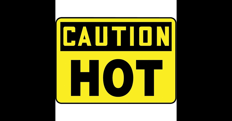 Safety sign made of adhesive vinyl. Measures x 10". CAUTION HOT. 004" thick Adhesive Vinyl. x 10". Square corners and scored backing for quick peel-off and application. Printed matte surface with permanent acrylic adhesive. Moisture-resistant. Indoor or sheltered environments. Complies with OSHA 29 CFR 1910. 145 and ANSI Z535 requirements.