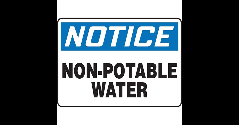 Safety sign made of adhesive vinyl. Measures x 14". NOTICE NON-POTABLE WATER. 004" thick Adhesive Vinyl. x 14". Square corners and scored backing for quick peel-off and application. Printed matte surface with permanent acrylic adhesive. Moisture-resistant. Indoor or sheltered environments. Complies with OSHA 29 CFR 1910. 145 and ANSI Z535 requirements.