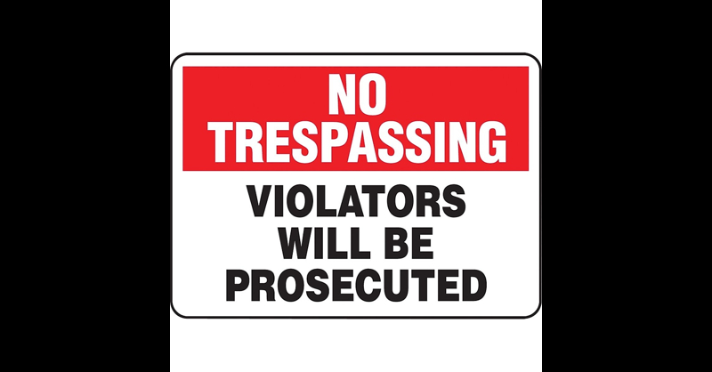 Safety sign made of adhesive vinyl. Measures x 10". NO TRESPASSING VIOLATORS WILL BE PROSECUTED. 004" thick Adhesive Vinyl. x 10". Square corners and scored backing for quick peel-off and application. Printed matte surface with permanent acrylic adhesive. Moisture-resistant. Indoor or sheltered environments.
