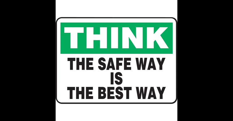 Safety sign made of adhesive vinyl. Measures x 10". THINK THE SAFE WAY IS THE BEST WAY. 004" thick Adhesive Vinyl. x 10". Square corners and scored backing for quick peel-off and application. Printed matte surface with permanent acrylic adhesive. Moisture-resistant. Indoor or sheltered environments. Complies with OSHA 29 CFR 1910. 145 and ANSI Z535 requirements.
