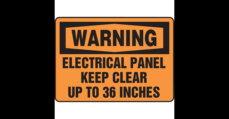 Safety sign made of aluminum. Measures 10" x 14". 10" x 14". 040" thick Aluminum. WARNING ELECTRICAL PANEL KEEP CLEAR UP TO 36 INCHES. Rounded corners with 3/16" mounting holes for easy installation. Protected by 2-mil high-gloss, UV-resistant clear polyester film. Guaranteed for 5 years. Withstands splashes, washdowns, outdoor conditions. Complies with OSHA 29 CFR 1910. 145 and ANSI Z535 requirements.