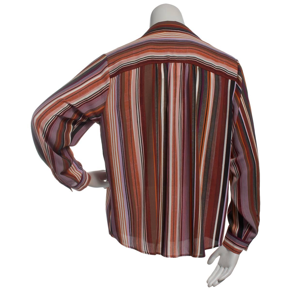 Pattern: Stripe Sleeve Length: 3/4 Sleeve Neck: Split Neck Collar: Point Functional flap chest pockets Interlock cuffs Curved hemline Cool iron.