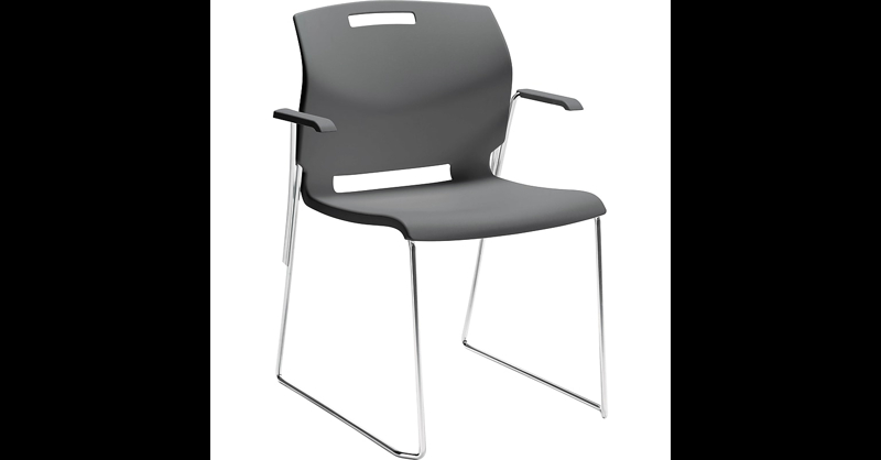 Popcorn, designed by Zooey Chu, is ideal for conference areas, cafeterias, classrooms and healthcare spaces or wherever multi-purpose stack applications are required. Stack chair with arms. Polypropylene shell.seat/back. 32 1/2"H x 24 1/2"W x 23 1/2"D. No assembly required. Popcorn's flexible backrest and supporting curves ensure comfort even when seated for extended periods. The chair features a durable 1/2" diameter steel rod frame with no front crossbar for greater leg comfort. The wallsaver design protects walls from markings and provides greater flexibility for tighter spaces. The one piece seat-back polypropylene shell offers a back cut-out for easy cleaning and a hand-hold for ease of transportation. Popcorn is also lightweight - starting at 15 lbs. The polypropylene models can be stacked 34 high on a dolly, while upholstered models can be stacked 15 high (Standard 80" door frame). Manufacturer Limited lifetime warranty. Seat: 18"W x 18"D. Back: 19. 5"W x 16".