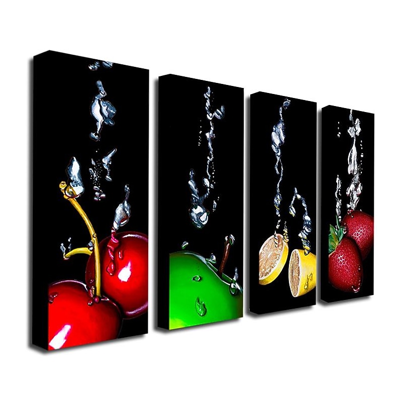 Including a set of 4 paintings that can be placed individually or together, MDF Gallery-Wrapped Canvas Art in Black by Trademark Fine Art is ideally painted to place on the walls of your kitchen to add a splash of colors. Material: Canvas/MDF. Color: Black. Type: Gallery-Wrapped Canvas Art. Weight: 8. 5 lbs. Warranty: 30 Days. Dimension: 32"H 12"W 1. 5"D. MDF Gallery-Wrapped Canvas Art in Black by Trademark Fine Art - A vibrant splash of colors.