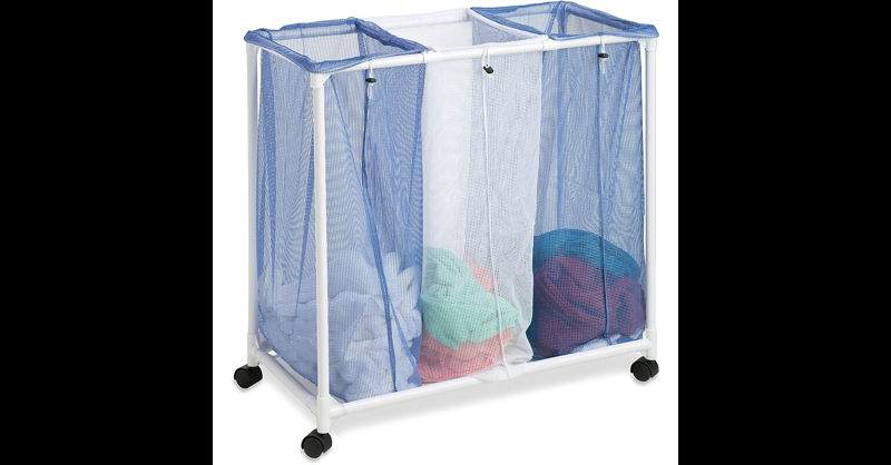 This mesh hamper has a durable design of sturdy plastic. It has wheels to roll around, and has a removable nylon bag that is washable. This sorter is very easy to assemble. Bags are removable and feature a drawstring closure. Blue. 28. 26"L x 13. 46"W x 30"H. Honey Can Do Laundry Sorter, an economical laundry solution, is a rolling hamper that has three full-sized compartments to make sorting laundry a breeze.