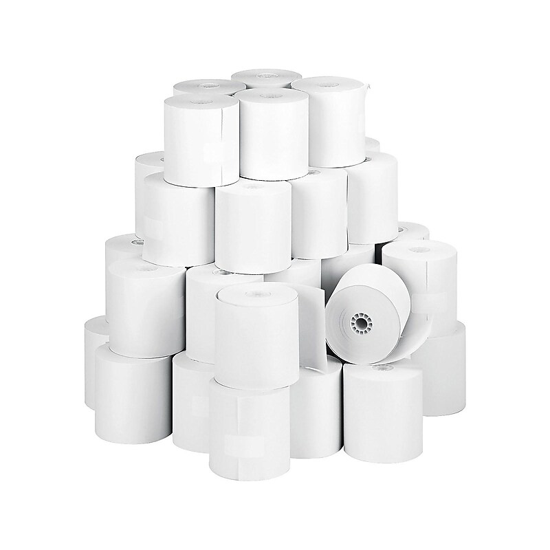 Provide clients with clear and legible receipts with these rolls of impact bond paper. Designed for use with financial firms and in teller windows, these paper rolls offer acolor for clear printing and are made of durable impact bond paper, perfect for record-keeping. These rolls of PM Company Perfection impact bond paper come in a carton of 50 for convenient bulk purchasing. Premium quality bond paper rolls are manufactured according to OEM specifications. 1-ply printing paper rolls. Paper size: 3"W 150'L. 50 rolls per carton. Meets or exceeds SFI standard. Print high-quality financial receipts with these PM Company Perfection impact bond paper rolls.