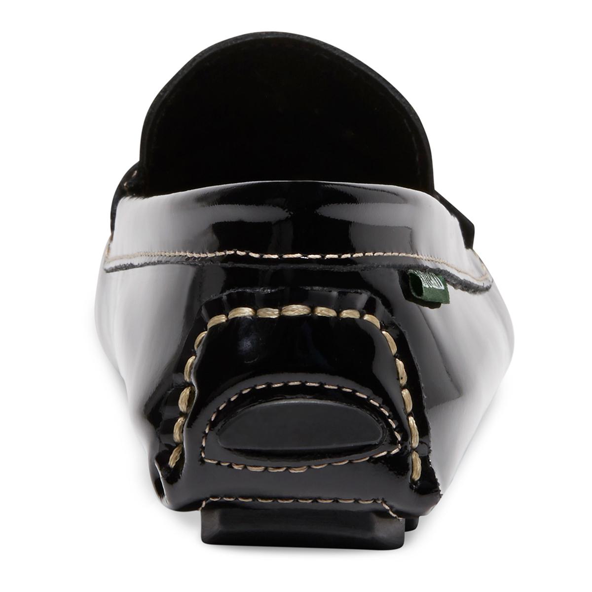 Enjoy the everyday comfort your feet deserve in these Womens Patricia slip on loafers. With a patent leather upper and soft fabric lining for barefoot comfort. Featuring a comfort insole that supports and conforms to the curves of your foot and a rubber driving moc outsole for great comfort, slip resistance and durability. Heel Height: 1/4".