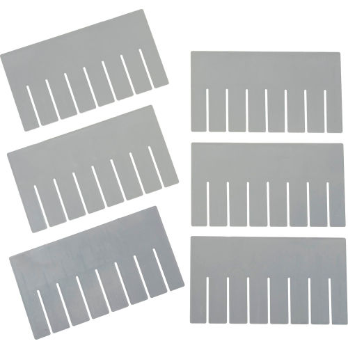 Width Divider DS92060 for Plastic Dividable Grid Container DG92060, Price for Pack of 6 Durable, corrosion resistant plastic dividers help compartmentalize your grid boxes for efficient, organized storage. Dividers are slotted to accept cross interlocking with Length Dividers (sold separately). Dividers are gray and sold in packages of 6.